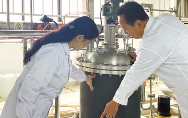 陕西科技大学牛育华科研团队成员在中试生产线上调试设备(资料照片)。