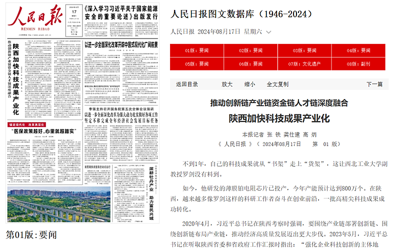 如今,他研发的薄膜铂电阻芯片已投产,今年产能预计达到800万个。在陕西,越来越多像罗剑这样的科研工作者奋斗在创业前沿,一批高精尖科技成果成功转化。
