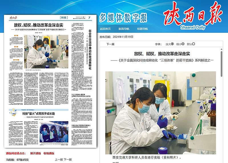 党的二十届三中全会提出“推进科技创新央地协同”。陕西科技资源丰富,聚集了众多央企、军工企业等单位,每年都会产出大批高质量的科技创新成果,“就地转化”成效还有较大提升空间。《若干措施》将改革的范围拓展到中央驻陕单位,明确推动中央驻陕单位改革拓面,提出通过“揭榜”改革任务、开展横向科研合作、联合承担科技计划项目等方式,支持中央驻陕单位进行成果转化,激发中央单位就地开展科技成果转化热情,提升转化成效。
