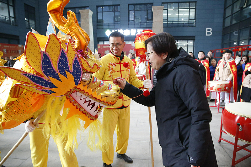 活动在激昂欢腾的中国龙鼓表演中拉开序幕。各单位领导为由工委系统干部职工组成的4支龙鼓队“点睛”,注入美好祝福。随后,4条福龙踏着欢快铿锵的锣鼓开始起伏跳跃、翩翩起舞,时而轻盈腾挪,时而回头望月。龙鼓队精彩的表演舞出了科技系统干部昂扬奋进的精神和饱满抖擞的热情,令现场观众大饱眼福,叫好声、鼓掌声不绝于耳。