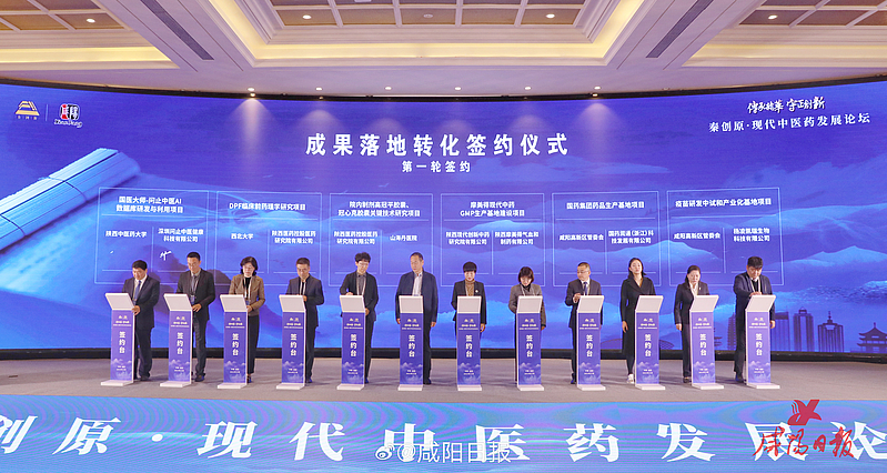 本届论坛以“传承精华、守正创新”为主题,采取集中签约、主旨演讲、推介发布等方式进行。现场签约问止中医AI数据库研发与利用、DPF临床前药理学研究、摩美得现代中药GMP生产基地等12个项目、总投资51.2亿元,涵盖中医药产学研合作、技术研发、成果转化、产业化投资等领域。国际欧亚科学院院士刘保延、第四届国医大师杨震、深圳问止中医健康科技有限公司CEO崔祥瑞、陕西步长制药有限公司董事长赵超、陕西康惠制药股份有限公司高级顾问陈亚龙、陕西省中医医院科技教育处处长闫小宁围绕中医药与人工智能作主旨演讲。咸阳高新区和旬邑县分别推介了中医药园区。