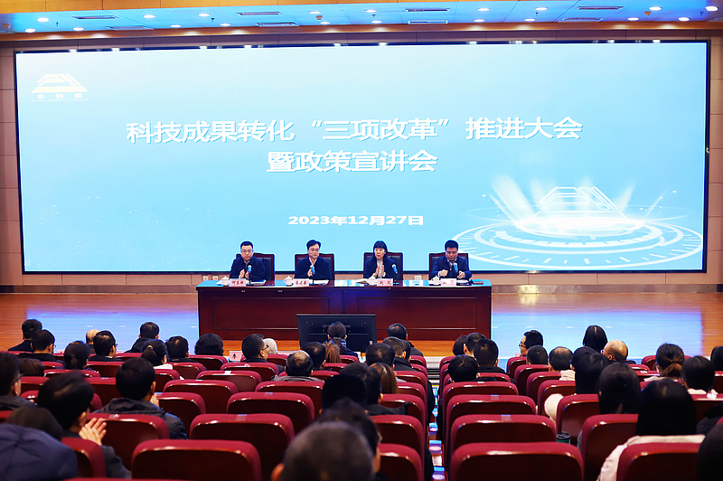 为深入贯彻落实省委《关于深入实施创新驱动发展战略 加快建设科技强省的决定》,持续发挥“三项改革”点火器作用,12月27日,爱上av 联合省教育厅、省卫健委联合召开科技成果转化“三项改革”推进大会暨政策宣讲会。省委科技工委书记、爱上av 厅长姜建春出席会议并讲话,省教育厅副厅长何玉麒通报陕西省与教育部部省会商相关情况,省卫健委副主任、一级巡视员赵岚安排部署医疗卫生机构“三项改革”有关工作,爱上av 副厅长王军主持会议。