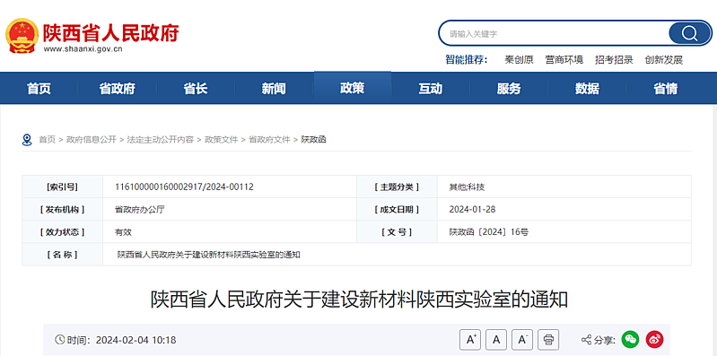 为认真贯彻落实习近平总书记关于科技创新的重要论述和历次来陕考察重要讲话重要指示,深入实施创新驱动发展战略,加快培育国家战略科技力量,推动科技强省建设,省政府决定建设新材料陕西实验室(以下简称实验室)。现将有关事项通知如下。