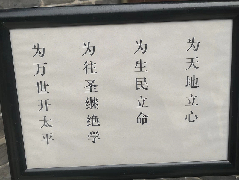 跟随着讲解员的步伐,走进了张载立志求学、清明为官、设馆讲学、创立关学的一生。我们一个展馆一个展馆、一块碑石一块碑石仔细地观看,悉心感悟先贤的深邃思想和博大情怀。深刻领会张载的“为天地立心”,在今天就是要为天地人重建伦理道德,构筑价值系统,立起“仁德”之心;“为生民立命”,就是要让天下百姓都有安身立命之处,对于我们党员干部来讲就是要有“全心全意为人民服务”的思考和作为,建设好自己的精神家园;“为往圣继绝学”,就是要继承儒家传统,将其思想发扬光大,增强传承优秀传统文化的责任心,坚定中华文化的自信;“为万世开太平”,就是要实现他在《西铭》描述的“民胞物与”“天下归仁”的社会理想,全世界积极“构建人类命运共同体”的责任担当。
