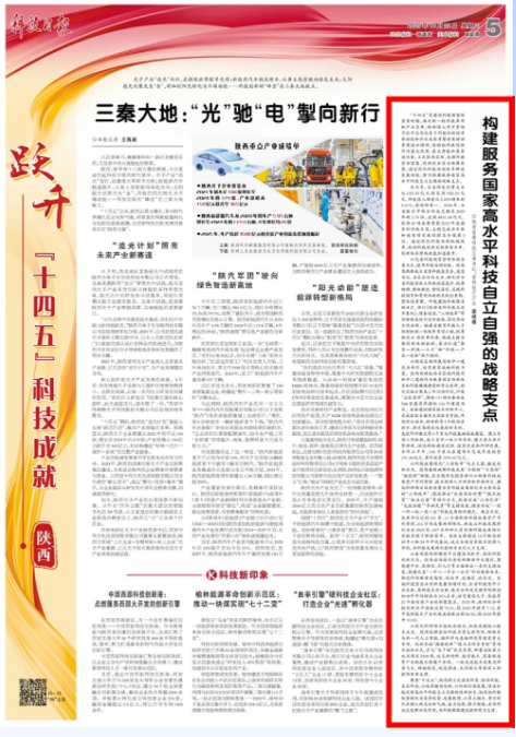 “十四五”是建设科技强国的重要时期,面对新一轮科技革命和产业变革,陕西深入学习贯彻习近平总书记关于科技创新的重要论述和历次来陕考察重要讲话重要指示精神,坚持把科技创新作为最大优势、最大潜能和最紧迫任务,立足陕西实际,发挥科教资源富集、创新综合实力雄厚优势,通过深化科技体制改革释放发展动能,努力构建服务国家高水平科技自立自强的战略支点。