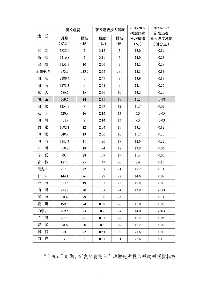 2022年陕西研发经费投入