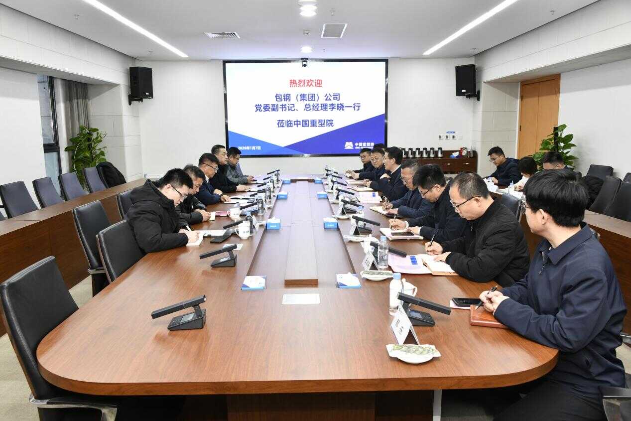 1月7日,包头钢铁(集团)有限责任公司(下称包钢集团)党委副书记、总经理李晓一行到访中国重型院,中国重型院党委书记、董事长王社昌热情接待。